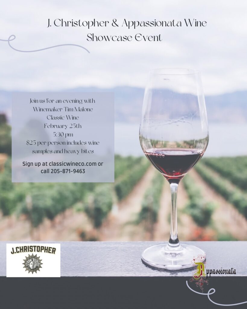 Join us as we welcome winemaker, Tim Malone, to Classic Wine Company to taste a selection of wines from the winery. We are super stoked to have Tim comes see us because we have always loved these wines. We will also have the higher end wines from their Appassionata line of wines. We will have some hearty bites to go along with these delicious wines.